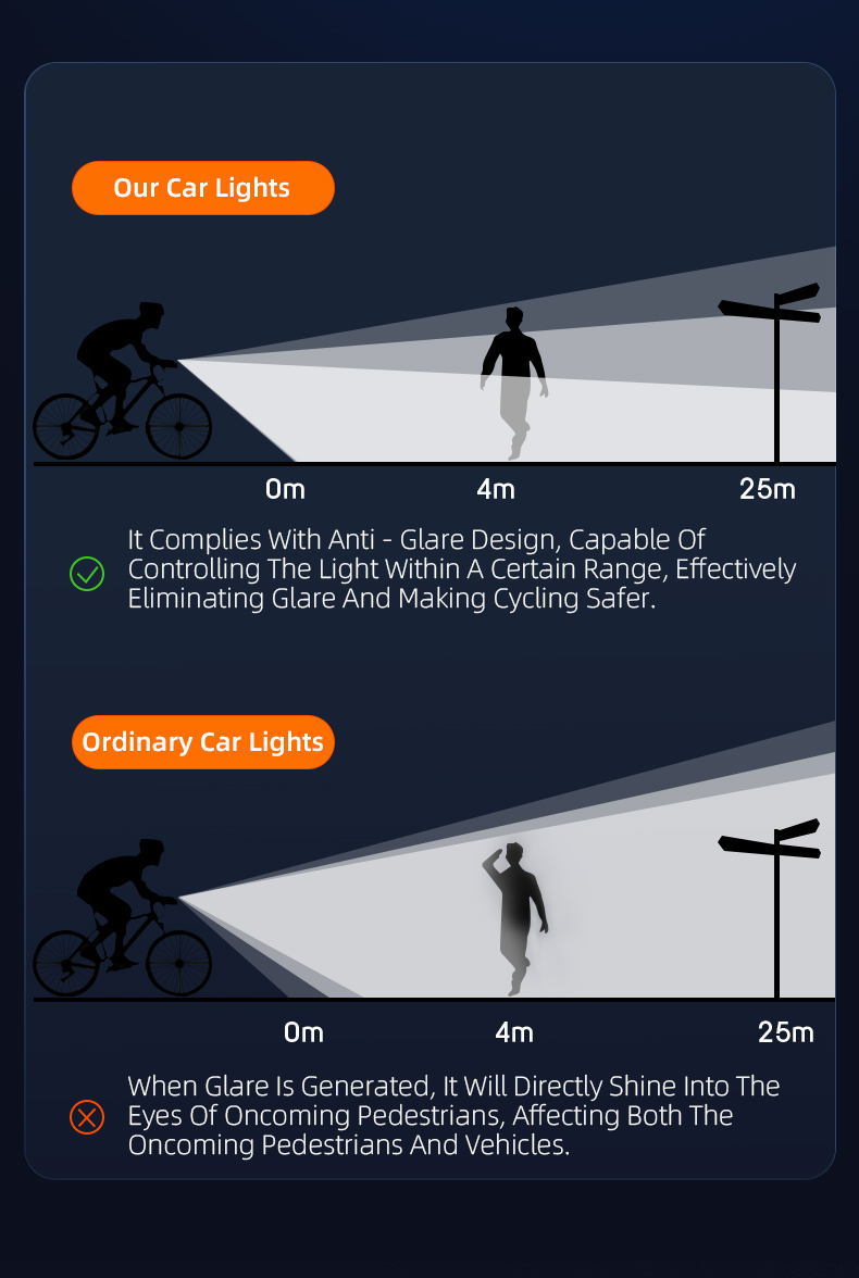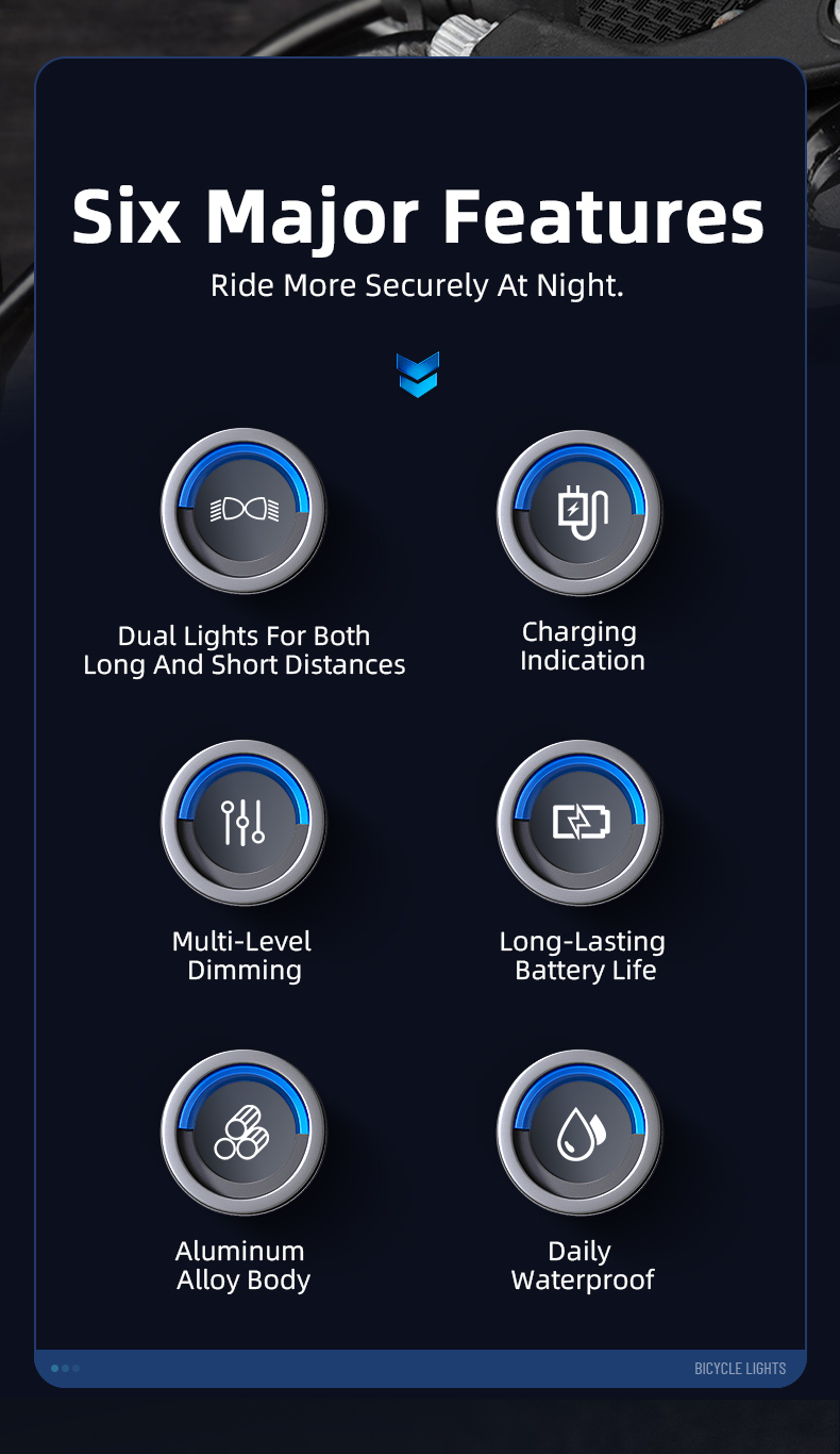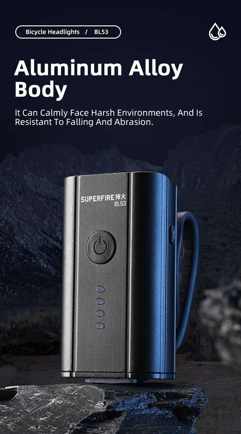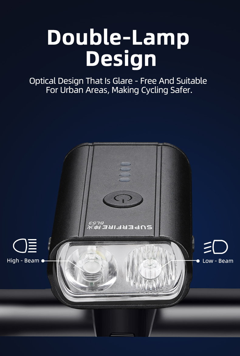 O BL53 é uma luz frontal de bicicleta com um brilho de 350 lúmens. É equipado com uma bateria de lítio embutida de 4000 mAh, que pode fornecer uma vida útil da bateria de 5 horas sob a condição de maior brilho. Seu alcance máximo pode atingir até 500 metros. Possui dois modos de iluminação, a saber, o modo de iluminação de curto alcance e o modo de projeção de longa distância, que pode evitar perturbar a visão de outras pessoas e reflete o respeito pela ordem pública. Esta luz também vem com um indicador de nível de bateria, tornando conveniente para os usuários verificar o status da bateria a qualquer momento e garantindo uma viagem sem preocupações.