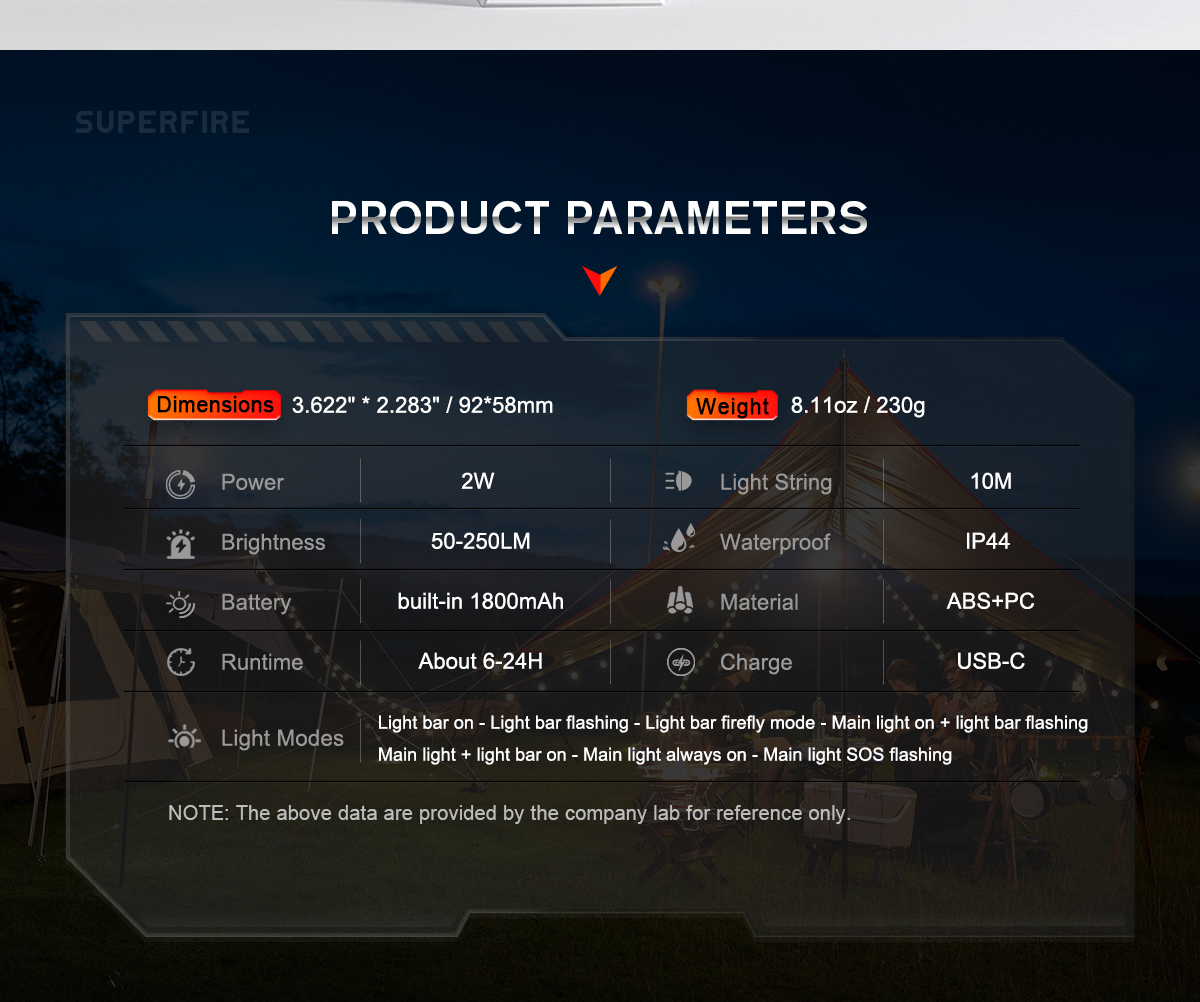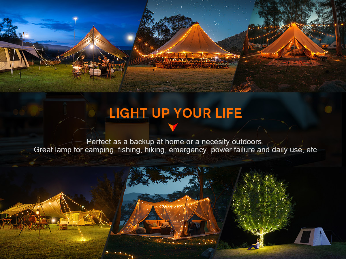 Apresentando o SUPERFIRE LT01 2-em-1 Camping String Lights. Com 7 modos de iluminação personalizáveis, esta luz de corda pode facilmente se adaptar a uma variedade de cenários ao ar livre, se você está montando acampamento, desfrutando de uma festa no quintal ou criando uma atmosfera festiva. O comprimento de 32,8 pés garante uma ampla área de cobertura, iluminando perfeitamente grandes áreas, como tendas, copas ou ao redor de acampamentos, proporcionando uma atmosfera funcional e confortável ao seu espaço ao ar livre. A estrutura leve e compacta torna mais fácil para embalar e armazenar em seu equipamento de camping, e equipado com um gancho conveniente, você pode facilmente colocar a luz da corda dentro da tenda, em um galho de árvore, ou qualquer local adequado para iluminação ideal. Perfeito para ambientes ao ar livre, como viagens de acampamento, festas no quintal ou decorações de férias, o SUPERFIRE LT01 combina design inovador com desempenho confiável para garantir que você esteja bem iluminado e preparado, independentemente da ocasião. Faça cada momento mais brilhante com o SUPERFIRE LT01!
